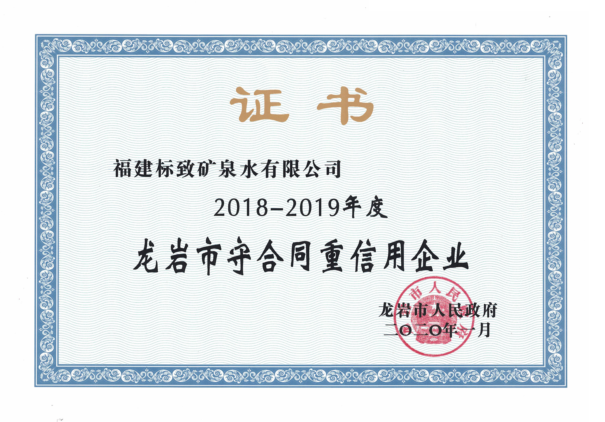 • 2020-06-162020年1月,標致公司榮獲“2018-2019年龍巖市守合同重信用企業”稱號